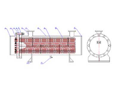 需要加熱的介質由進口進入,通過折流板使介質充分得到加熱,然后經出口流出。為了使介質的溫度達到要求的溫度,可以在筒體內部或出口處安裝一個溫度傳感器采集介質的溫度,配合數字溫度調節儀等控制電路來控制電加熱管。超過設定溫度停止工作,低于設定溫度啟動。